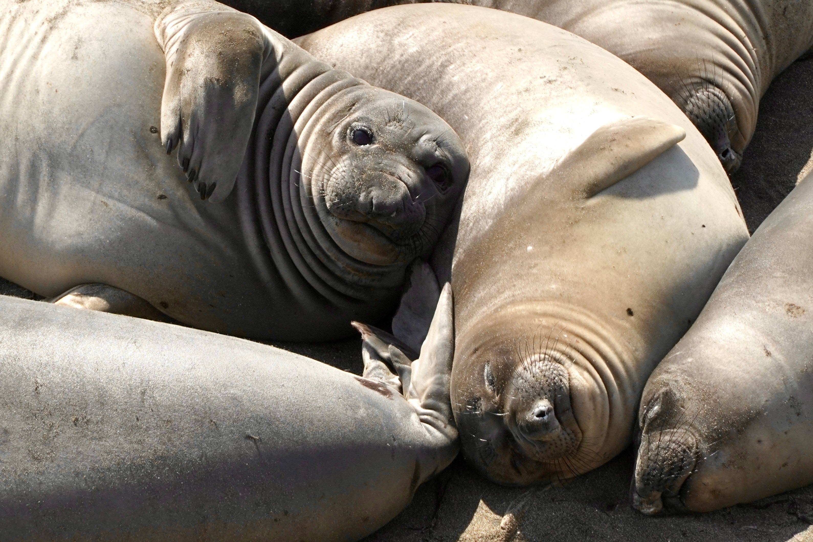 Molting season, from April through August, brings adults and juveniles back to the beach for their annual catastrophic molt, a remarkable process in which they shed their entire outer layer of fur all at once, rather than gradually. A fresh coat is already waiting underneath.