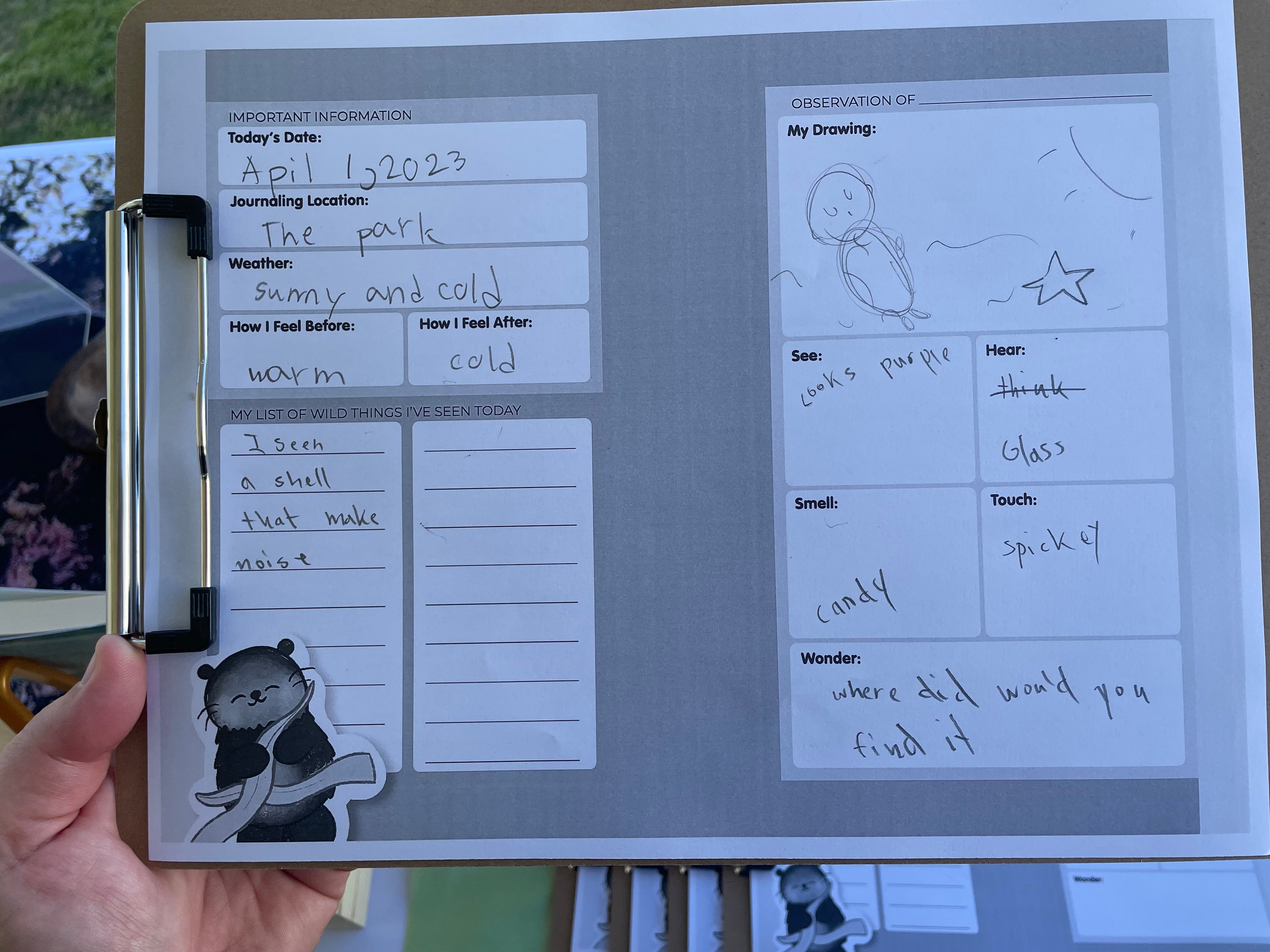 This approach, however, can be intimidating for some children who are being introduced to nature journaling, so I have found it is best to use prompts and labeled pages to guide them.