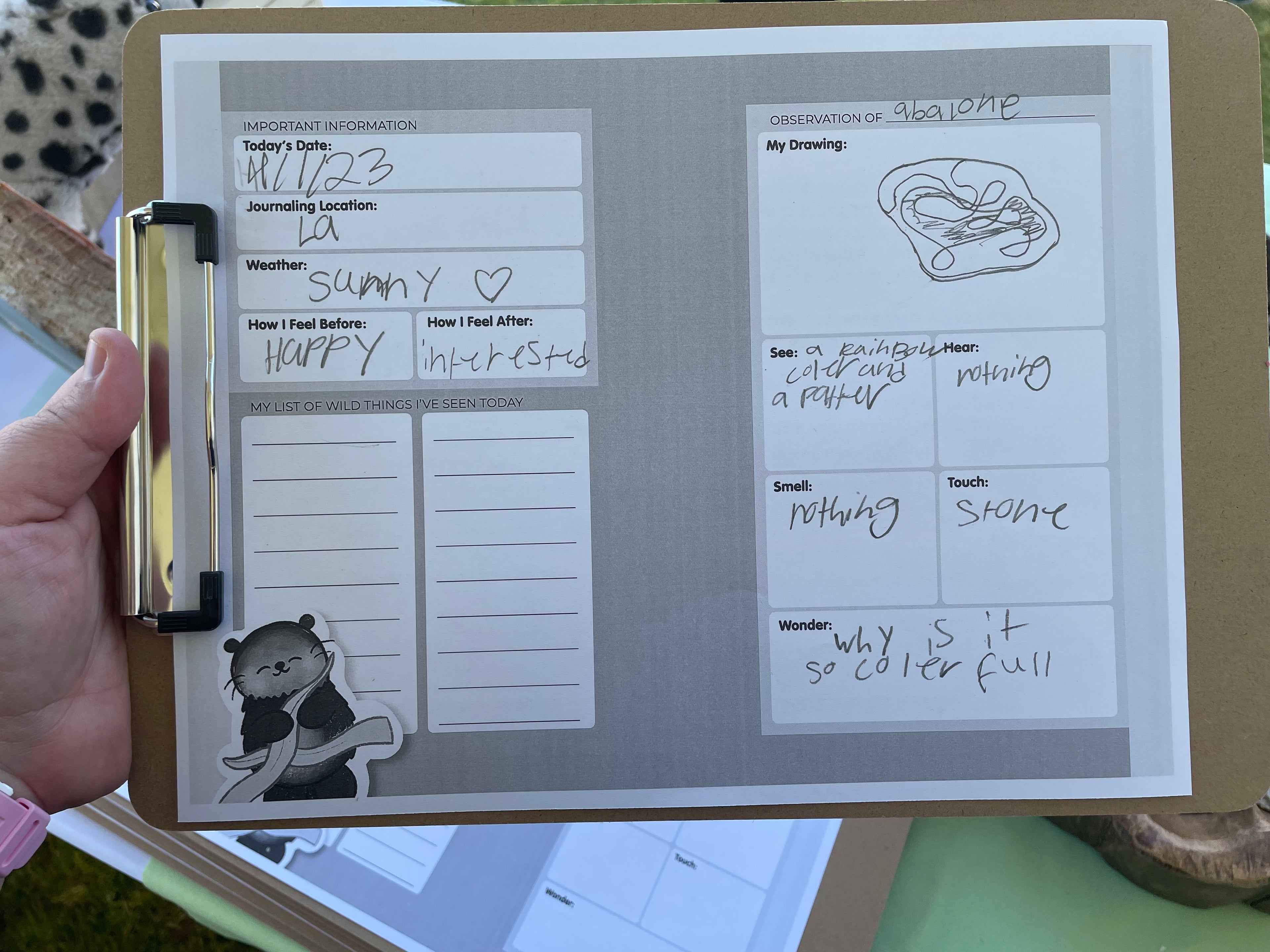I write nature journals for kids ages 5-8, but nature journaling is beneficial for every age! Nature journaling is a lifelong hobby that can be picked up at any point in life, combining art and science for every experience level.