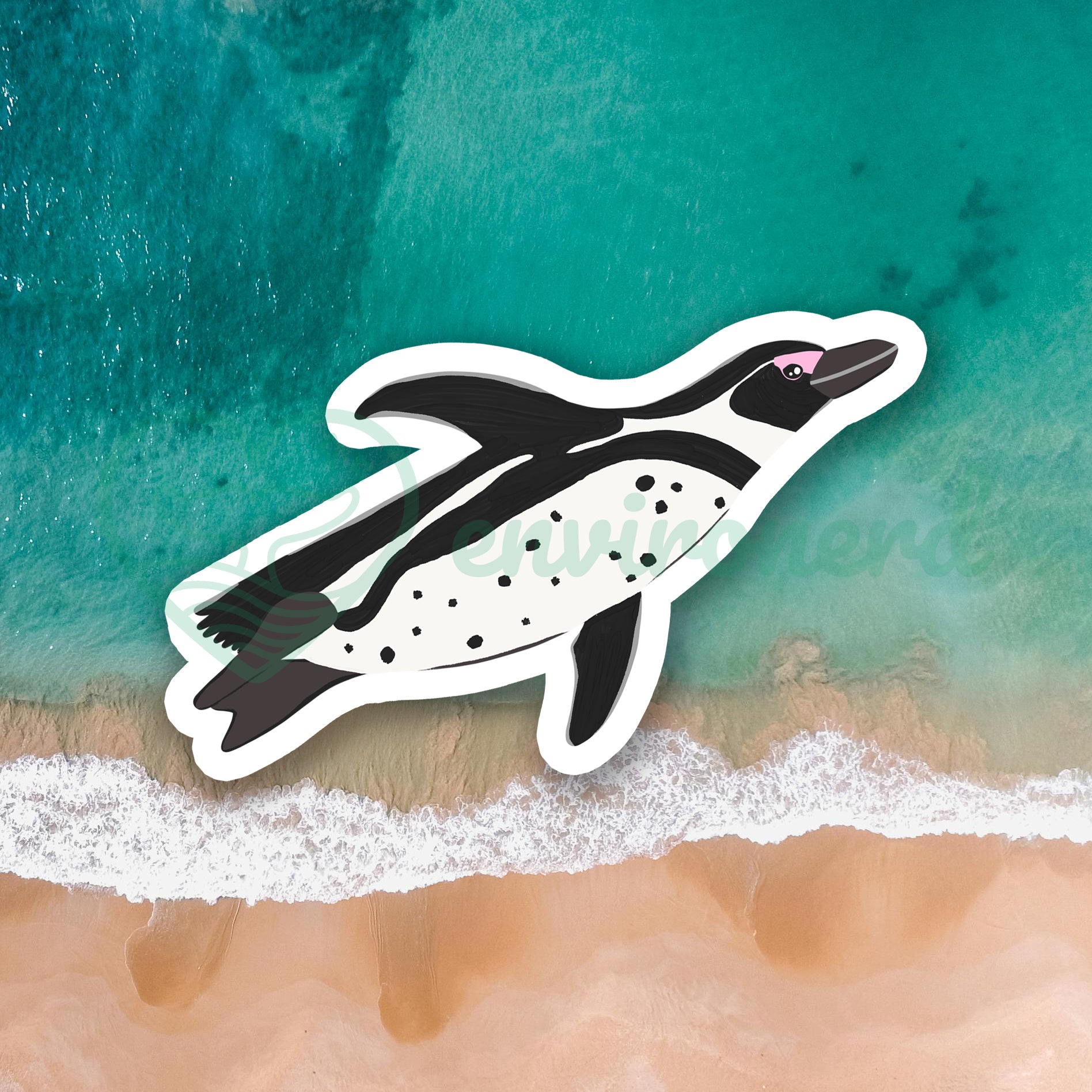 Waterproof, matte sticker featuring original art. Measures 3 inches at the longest edge.