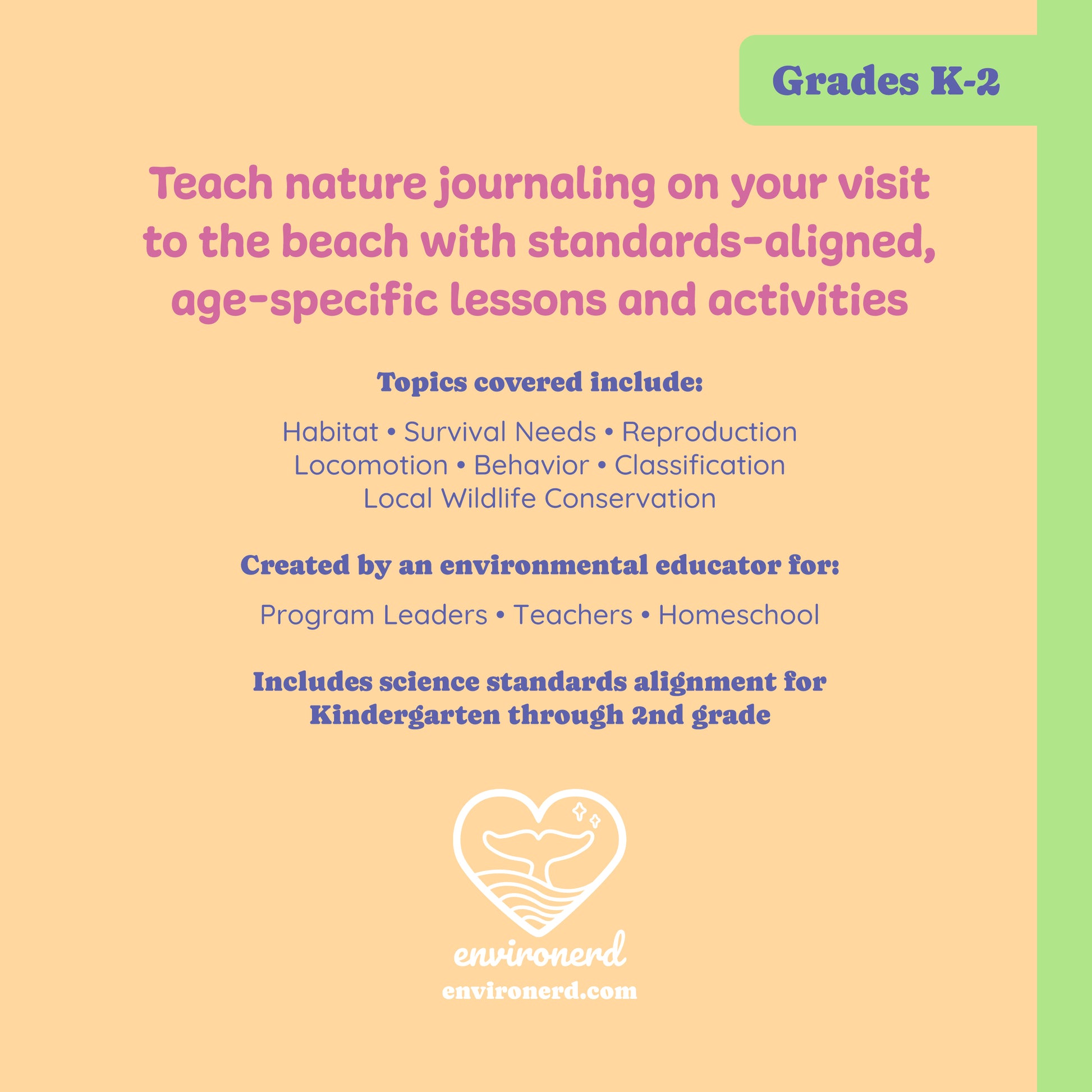 Teach nature journaling on your visit to the beach with standards-aligned, age-specific lessons and activities for K-2nd grade.