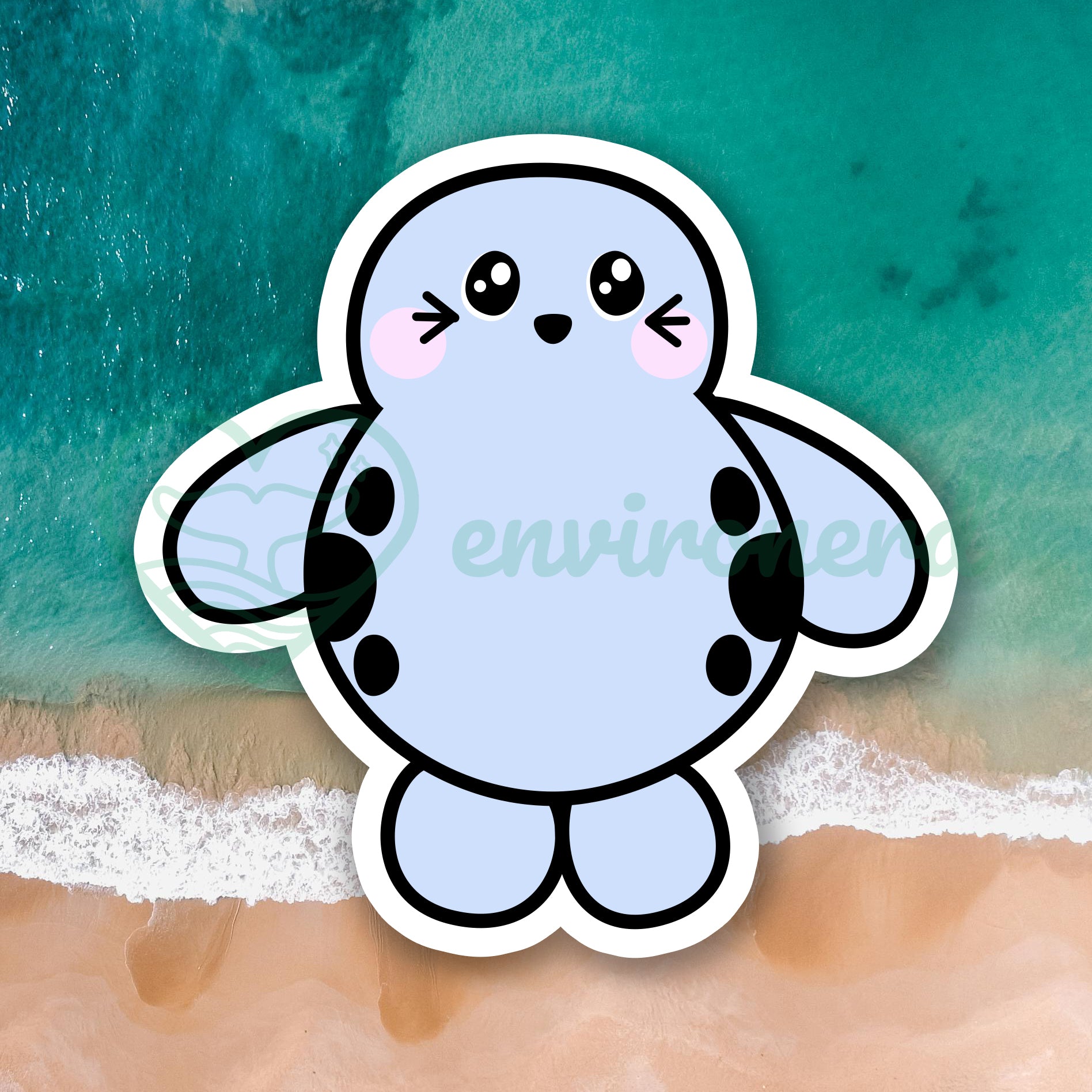 Waterproof, matte sticker featuring original art. Measures 3 inches at the longest edge.